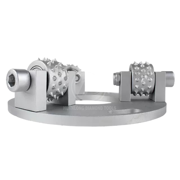 Our 3 rollers bush hammer plates also can be used for stone surface fabricating, making bush hammered effect for stone products. It can creat slip-resistant finish one granite and marble, breaking down coatings standard diamonds can’t reach, prepares surface for application of thin-set overlay.