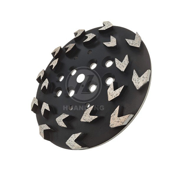 It features arrow-shaped diamond segments, designed for quickly grinding concrete surfaces and removing epoxy resin, adhesives, and coatings.