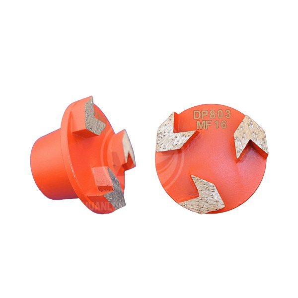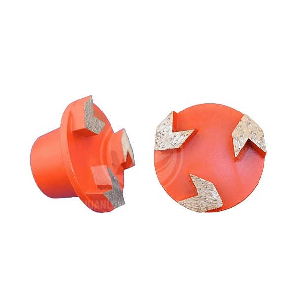 Diamond grinding plugs with arrow segments are aggressive, specialized removal tooling for floor grinders, featuring an arrow-shaped cutting edge to rapidly remove thick glues, epoxy, mastic, and other tough coatings from concrete, offering fast stock removal, reduced gumming, and efficient preparation for polishing or resurfacing