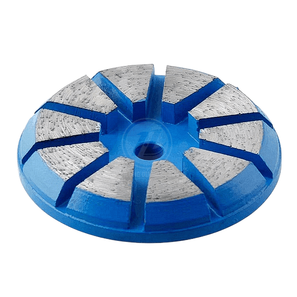 The ten segment is an excellent diamond tool generally used in the first few steps of the concrete polishing process. Depending on the surface coating,the ten segment tooling can be used as a coatings removal tool up to 1mm thick (16 grit is ideal) while not gouging the surface. The rugged design of the tool makes it ideal for surface preparation,concrete correction, and grinding. Special BEVEL design provides easy seam link crossing. The Particular formula of the ten segment tooling provide added lifetime.