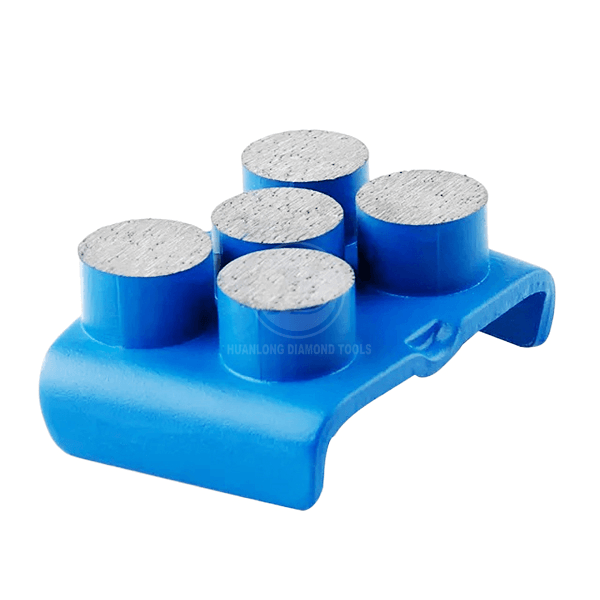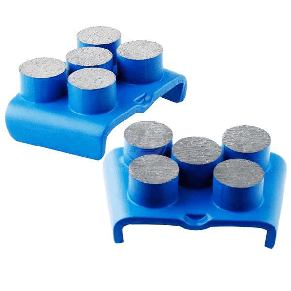 Unlike the standard 2-segment shoes used for general grinding, the 5-round segment configuration is engineered for fast, aggressive material removal and fine surface finishing due to its larger surface area and unique pressure distribution.