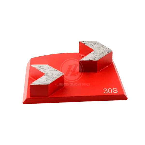 Application: Huanlong Quick change grinding shoe with 2 Arrow shape diamond segments is wildly use for concrete floor grinding, floor preparation, coatings removal and concrete polishing . Suitable for Lavina, Onfloor, EDCO etc Floor Grinding System.
