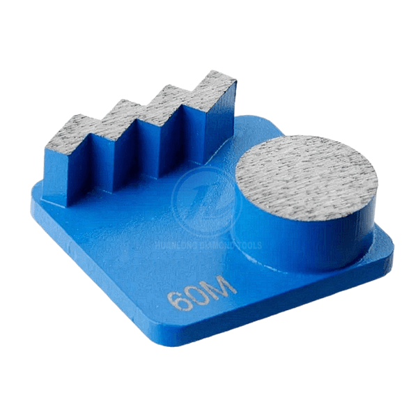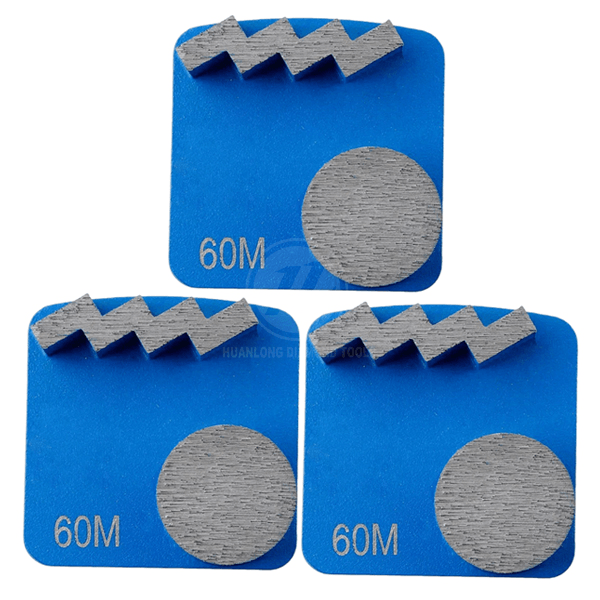 Application: Huanlong REDI-LOCK grinding shoe with 1 Zigzag + 1 Round segments is wildly use for concrete floor grinding, floor preparation, coatings removal and concrete polishing . Redilock back suits Hasqvarna Grinding machines or grinder with adaptor plate.