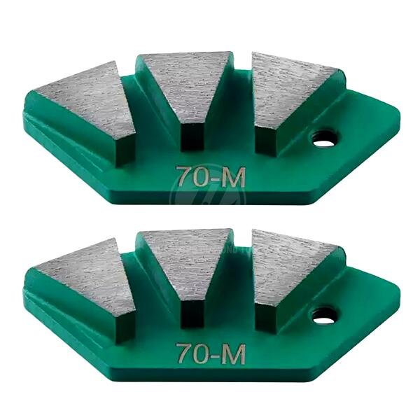 Medium bond suitable for grinding medium-soft to medium concrete. Number of grinding segments determines the pressure applied on each diamond segment, thus the aggressiveness of grinding. A lower number of segments corresponds to a more aggressive grind.
