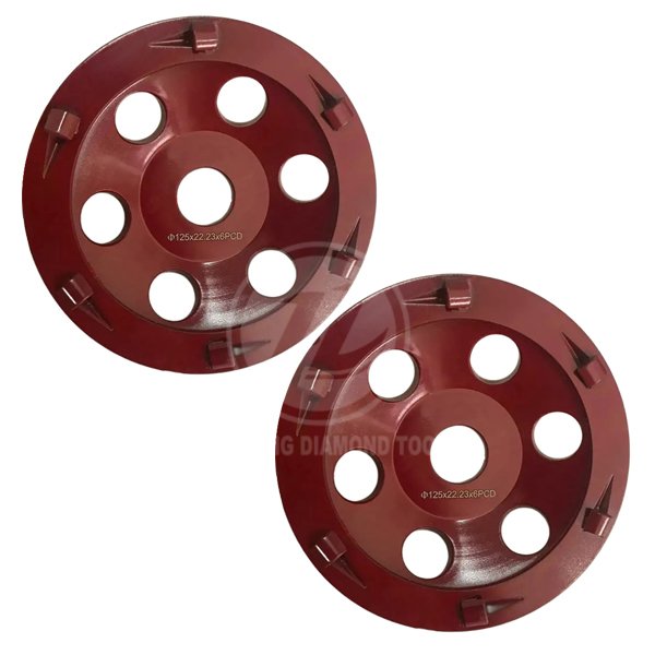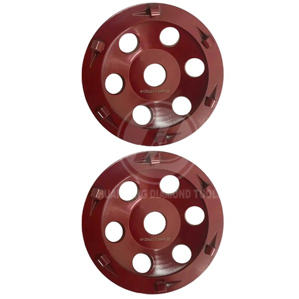 The 180mm/7″ 6 PCD segments diamond grinding cup wheel is designed for fast removing hard and tacky surface coating including epoxy, paint, glue ,thick mastic, waterproofing membrane,pool deck coating,VCT mastic, black tar adhesive, old and new epoxy coating, as well as thick rubber materials on the concrete floor.