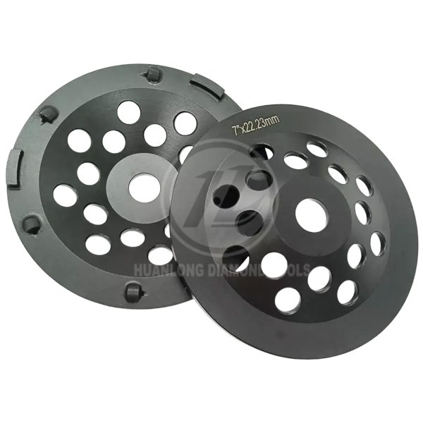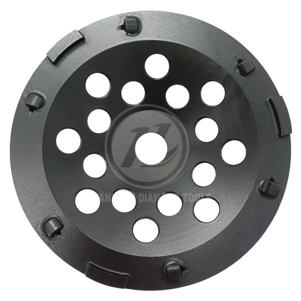 The 180mm/7″ 6 PCD segments diamond grinding cup wheel is designed for fast removing hard and tacky surface coating including epoxy, paint, glue ,thick mastic, waterproofing membrane,pool deck coating,VCT mastic, black tar adhesive, old and new epoxy coating, as well as thick rubber materials on the concrete floor.