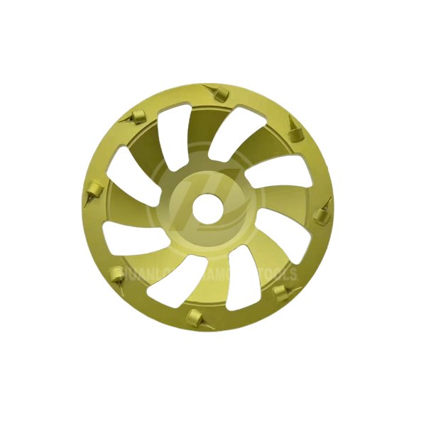 Home » Products » PCD Coating Removal Tools » PCD Cup Wheel » 7 inch 8 PCD Diamond grinding cup wheel with turbo cooling holes, Professional coating removal Grinding Disc, 8* 1/4 PCD segments, For Fast Aggresive Epoxy, Paint, Glue Removal.