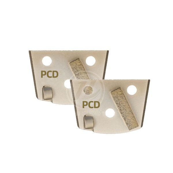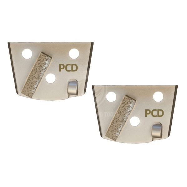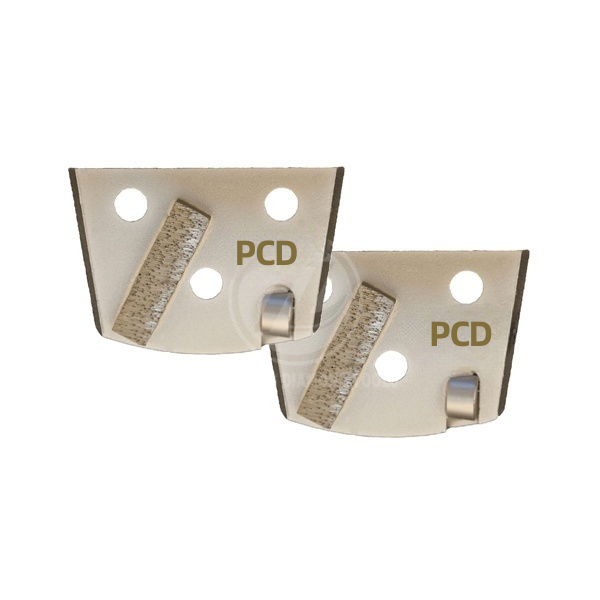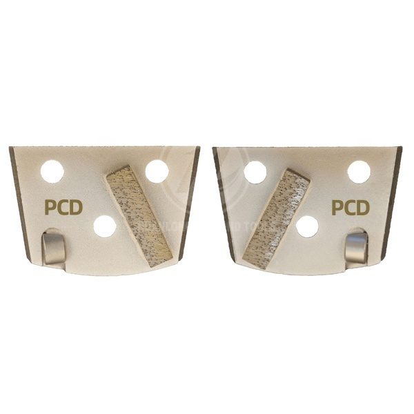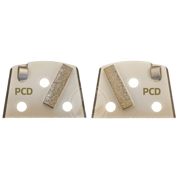 “PCD Plug WITH 3 PCDs are designed to remove coating over a surface equal to a troweled surface and will not damage the concrete. One of the 3 PCDs act as a stabilizer and depth guide, and reduce the gauging of the floor caused by the aggressive pcd segments. Diamond plug for Floorex grinder, with different shapes segments. But what is more important, especially in the initial grinding steps, is the bond or hardness of the tools. “