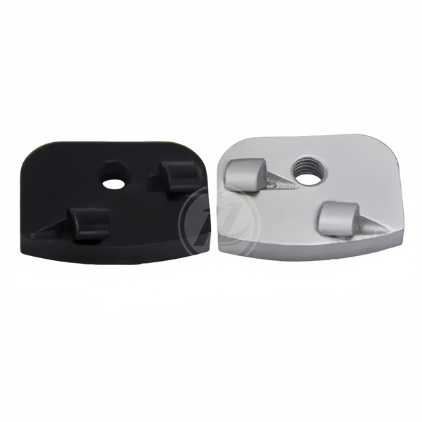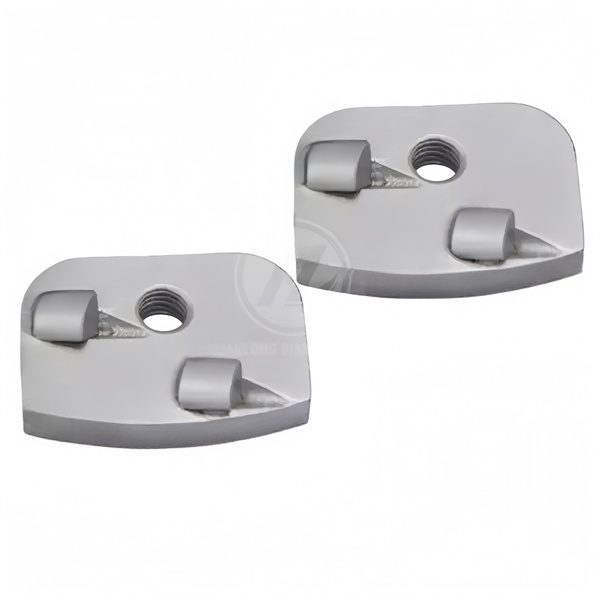 Grinding Shoes with Double 1/4 PCD Segments for Rhino New Grind Machine PCD (Polycrystalline Diamond) Grinding Blocks/Segments, PCD Scrapers or Grinding Shoes. They are designed to remove thick coatings, adhesives, epoxy resins, varnishes, and paints from concrete surfaces.