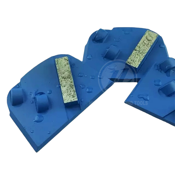 Bolt-on Style 3×1/2 PCD refers to a type of concrete floor grinding tool, specifically a diamond segment with 3 pieces of half-round Polycrystalline Diamond (PCD) on a plate metal blank, used for aggressively removing thick coatings like epoxy, glue, and mastic from concrete floors
